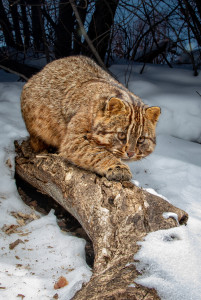 Амурский лесной кот точит коготки