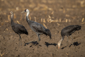 Чёрные журавли на убранном поле кукурузы