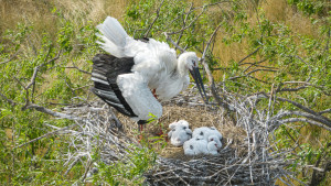 Дальневосточный аист с птенцами