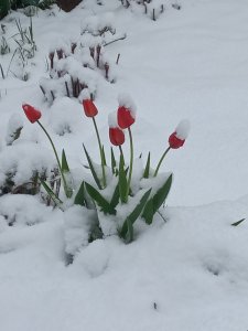 Тюльпаны под снежной шапочкой