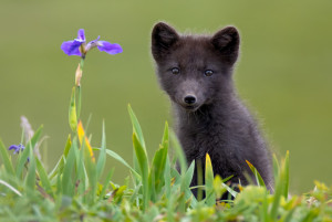Щенок беренгийского песца в ирисах