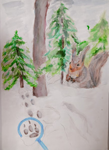 Белочка в зимнем лесу