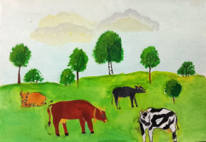 На лугу пасутся коровы.