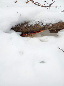 An alder twig in a winter forest