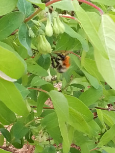 The furry guest on the honeysuckle