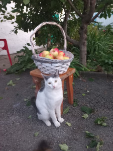 The cat with apples