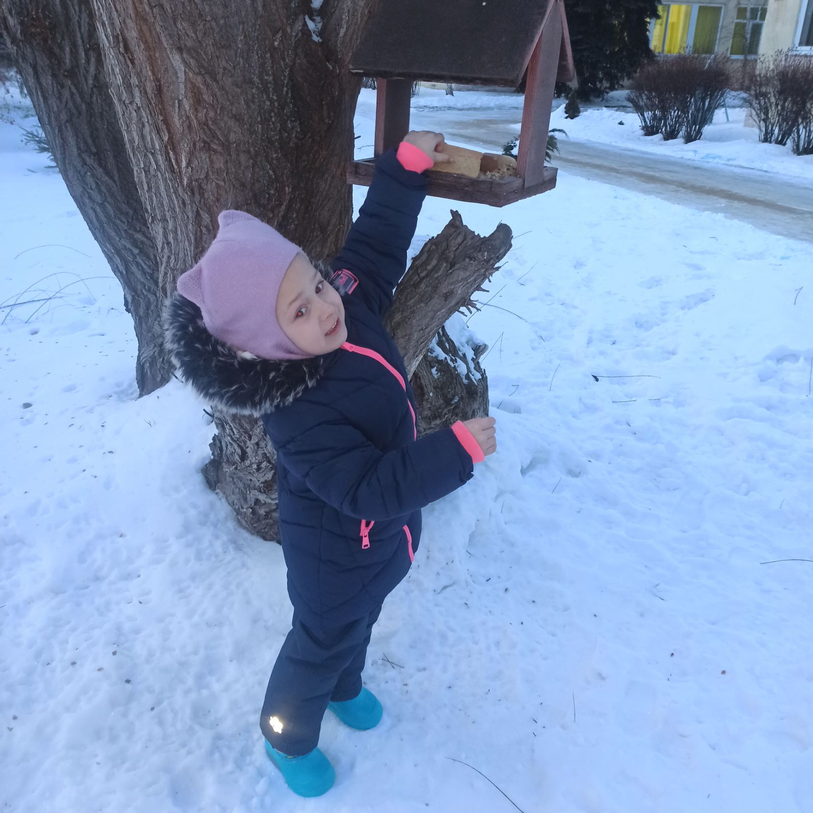 We fed the birds in winter