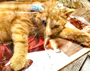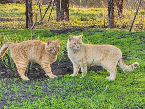 A red-haired cat sings a sweet song to a red-haired cat