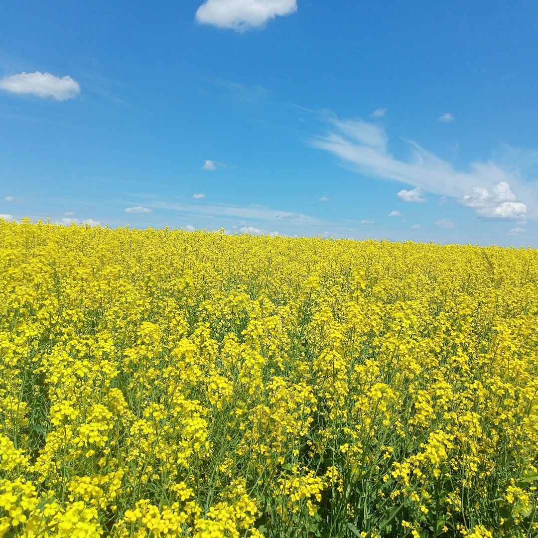 A golden field under an azure sky