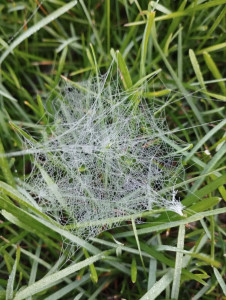 Spider webs in the green forest