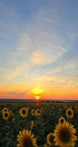 "Puesta de sol en los girasoles"