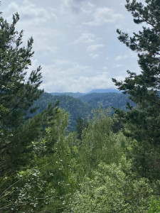Mañana en el bosque de pinos