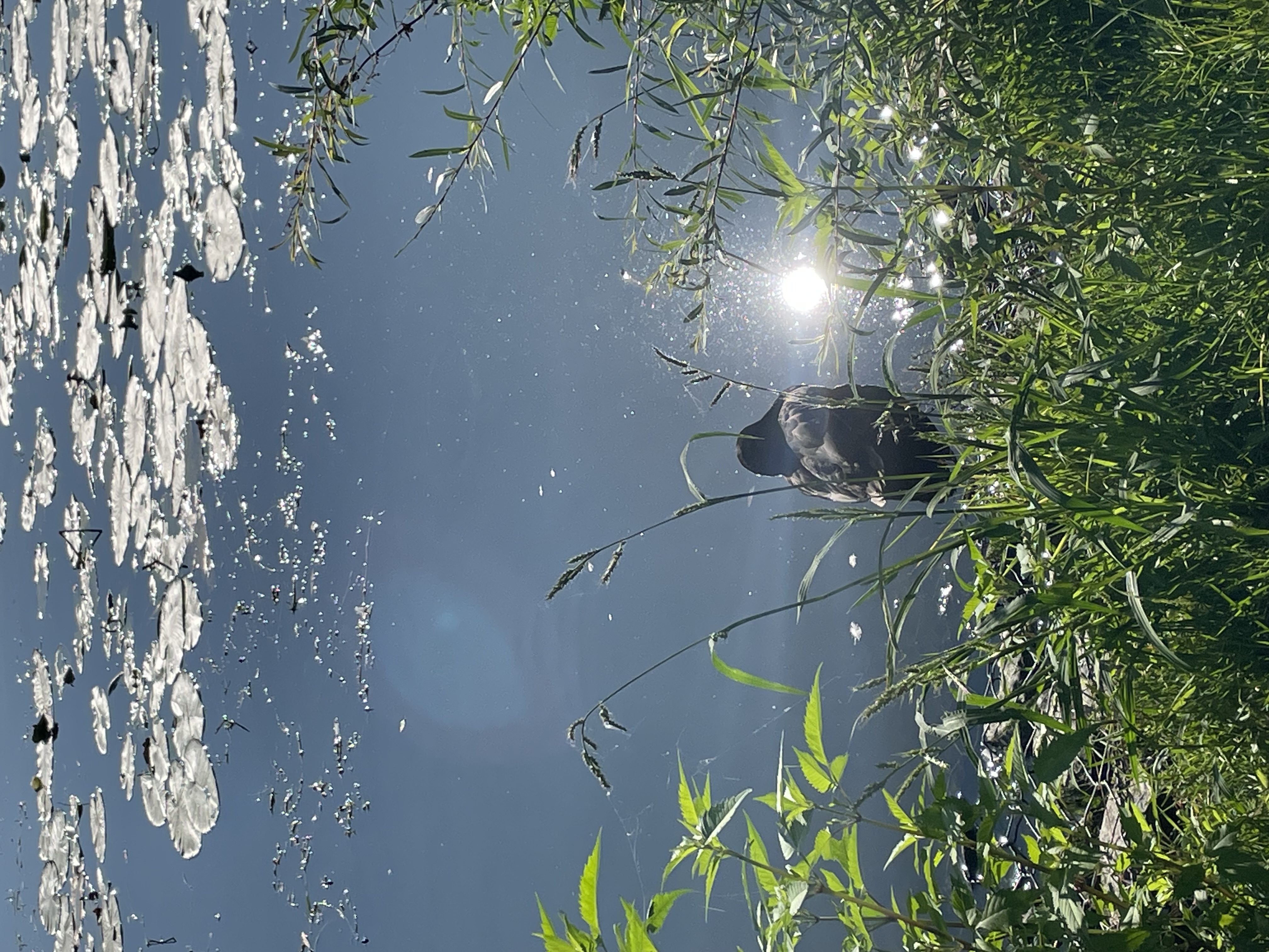 Patos en la niebla de la mañana