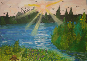 ¡Conservemos la naturaleza así! Lago en los rayos.