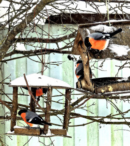 Стайка снегирей