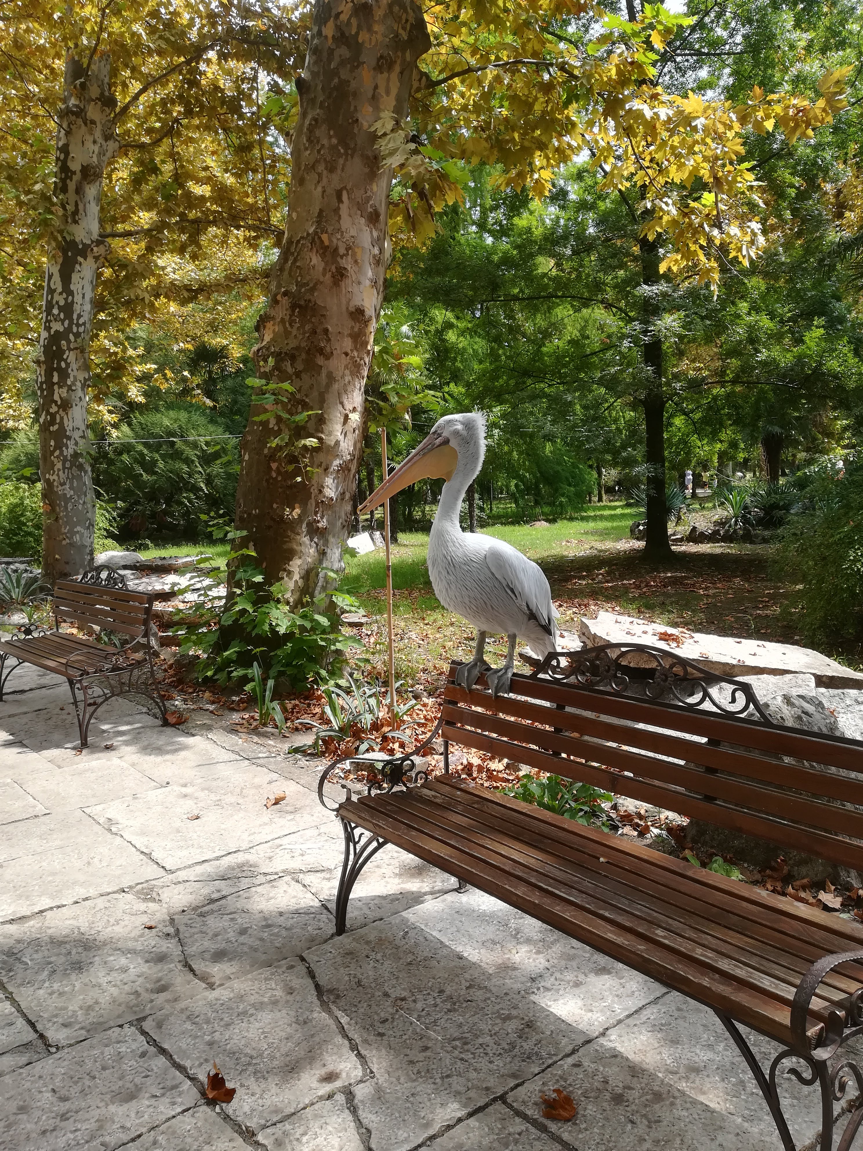 Пеликан на лавочке
