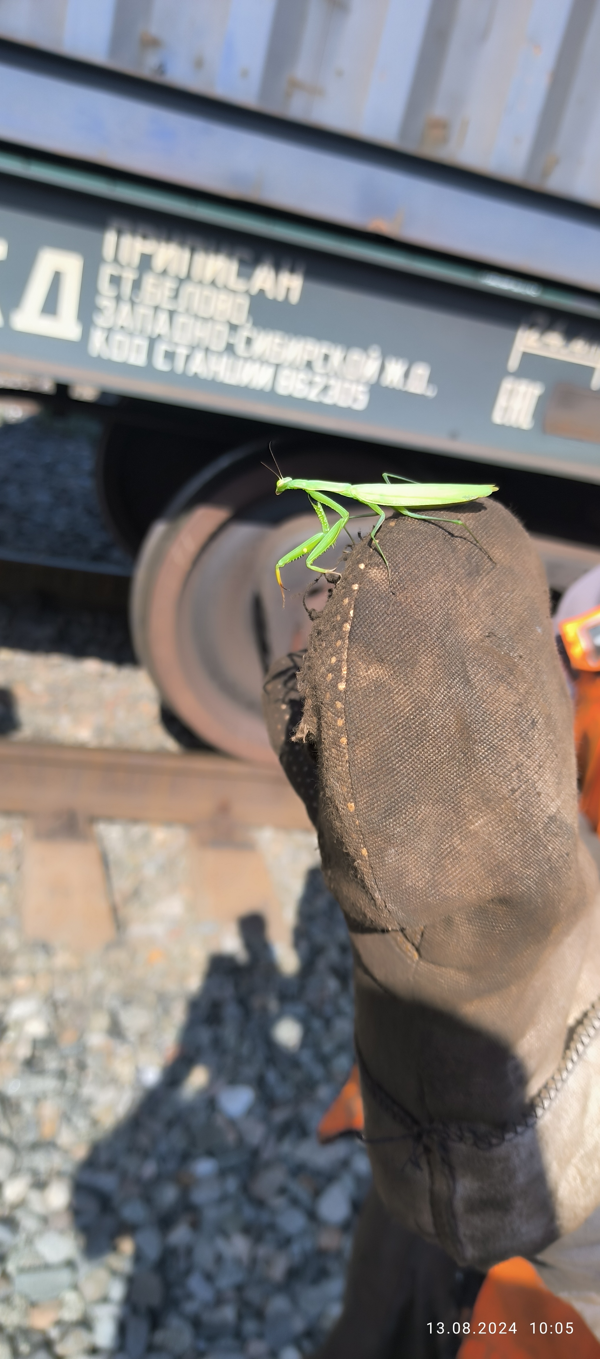 Рельсы, шпалы, богомол