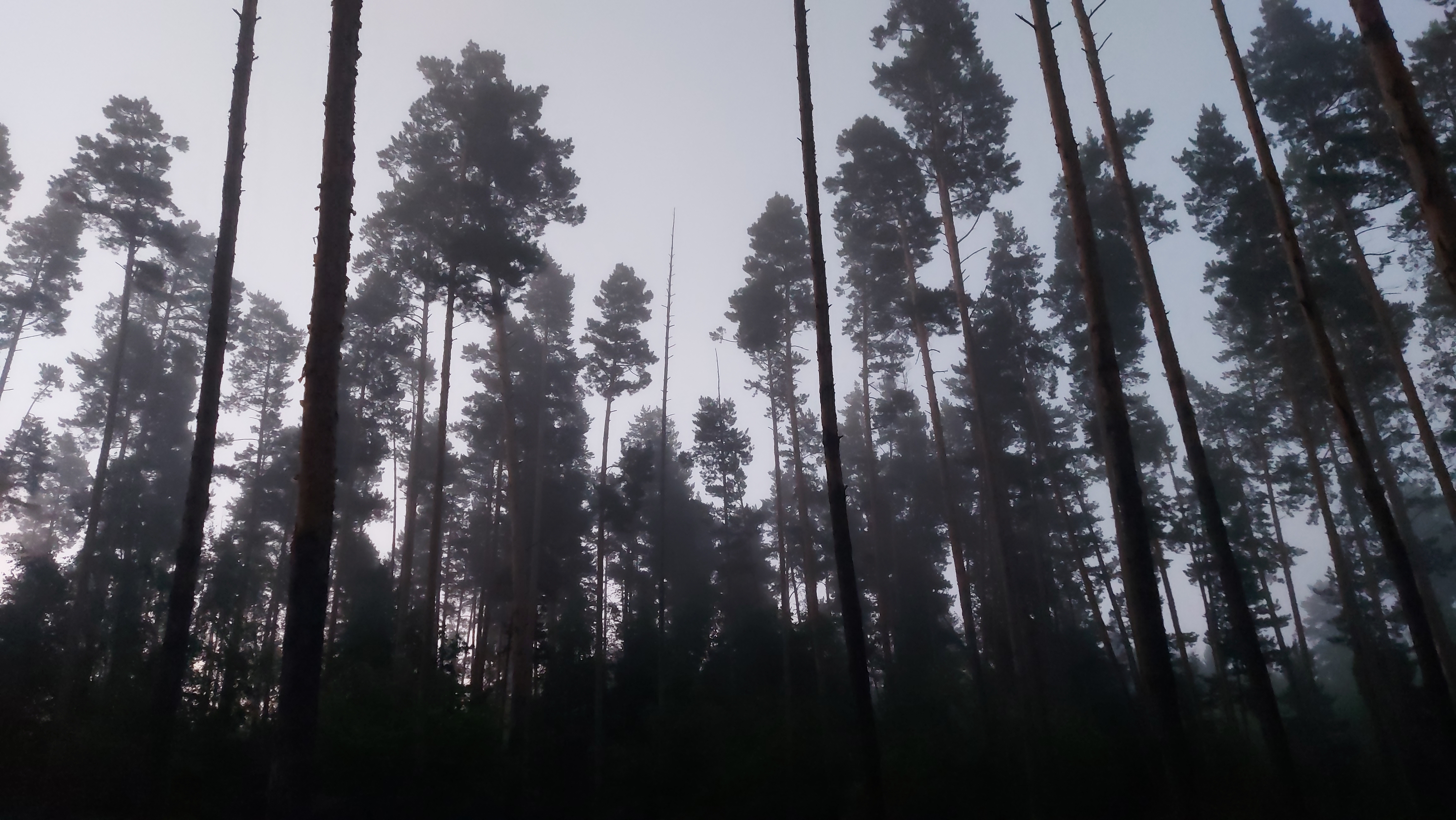 Сосновый лес в лагере ранним утром