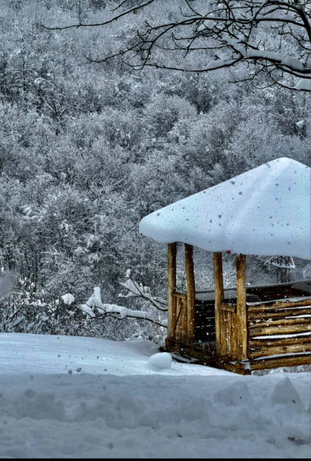 Зимний пейзаж с беседкой