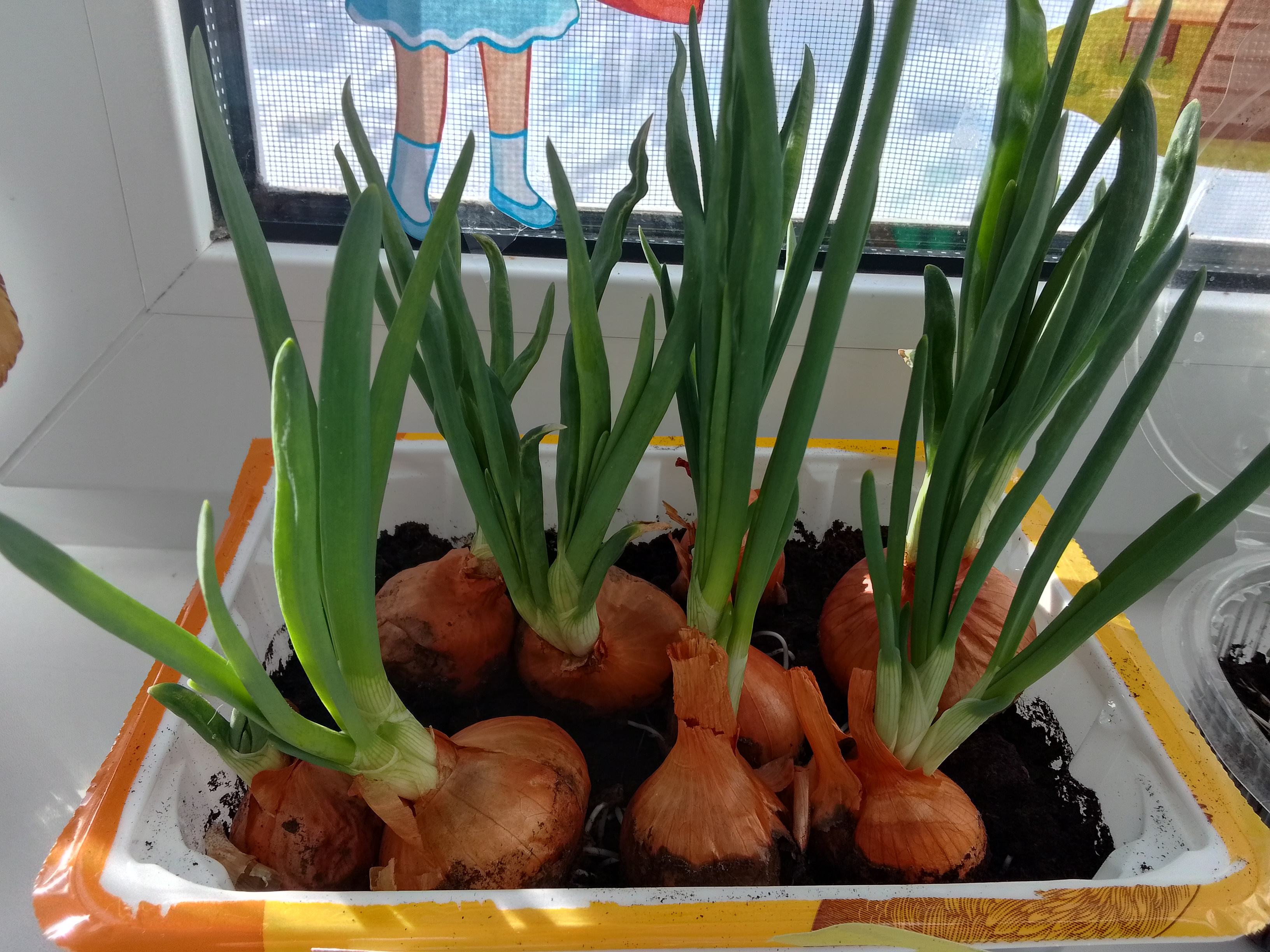 Лук на подоконнике