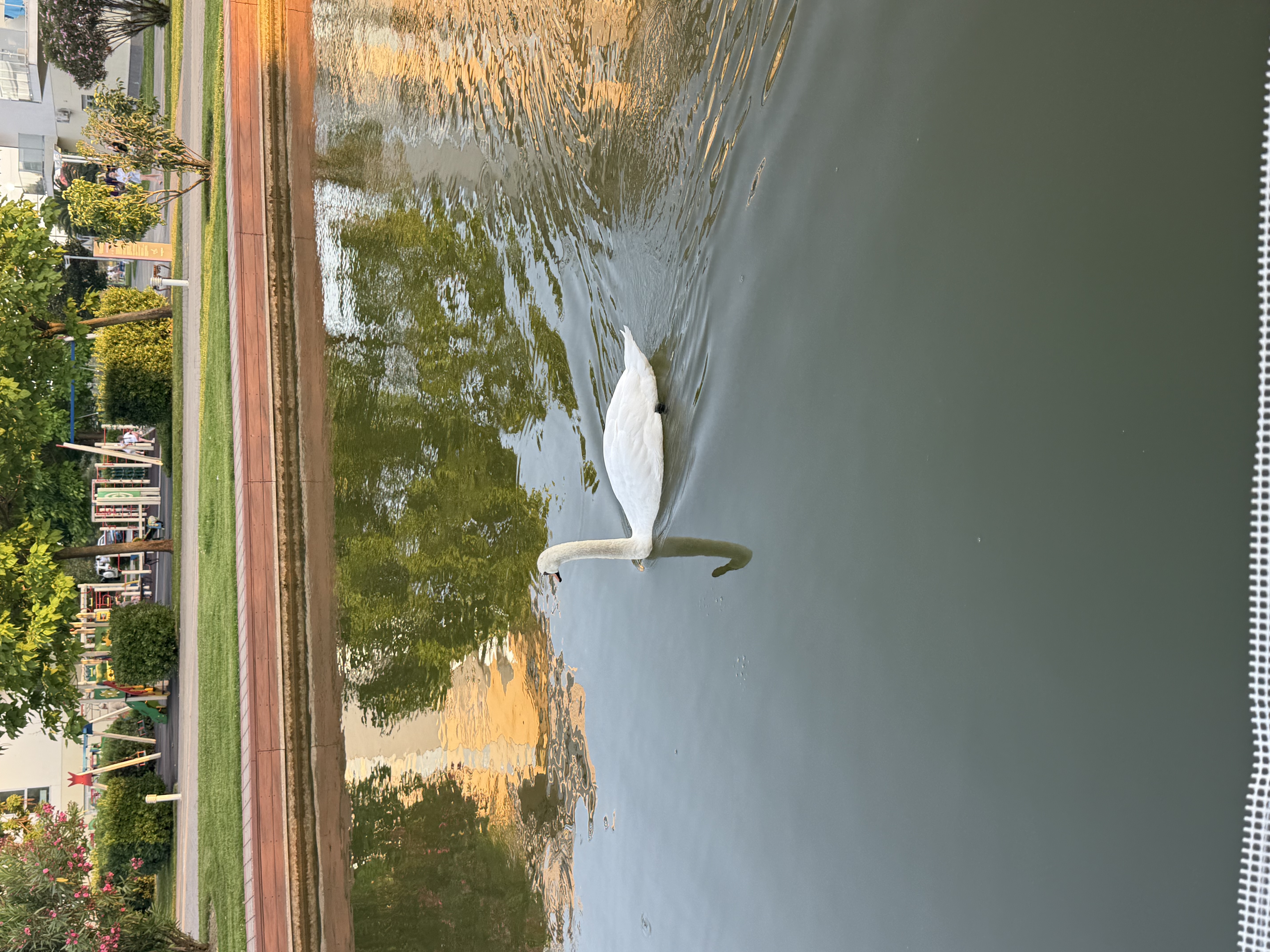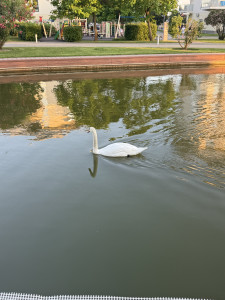 Красивый лебедь на водоеме