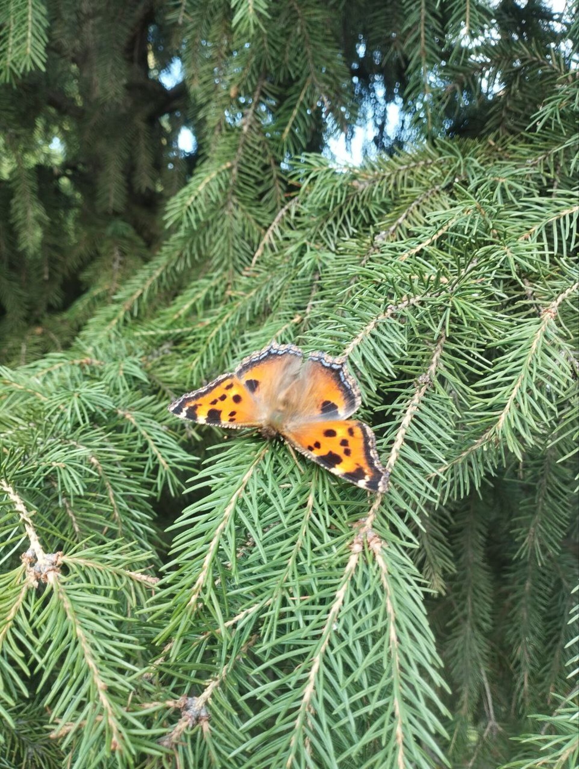 Оранжевая гостья на ели