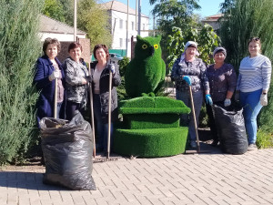 Учителя на уборке территории