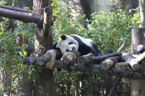 В китайском городе Ченду заботятся о панде, занесенной в Красную книгу и являющейся символом