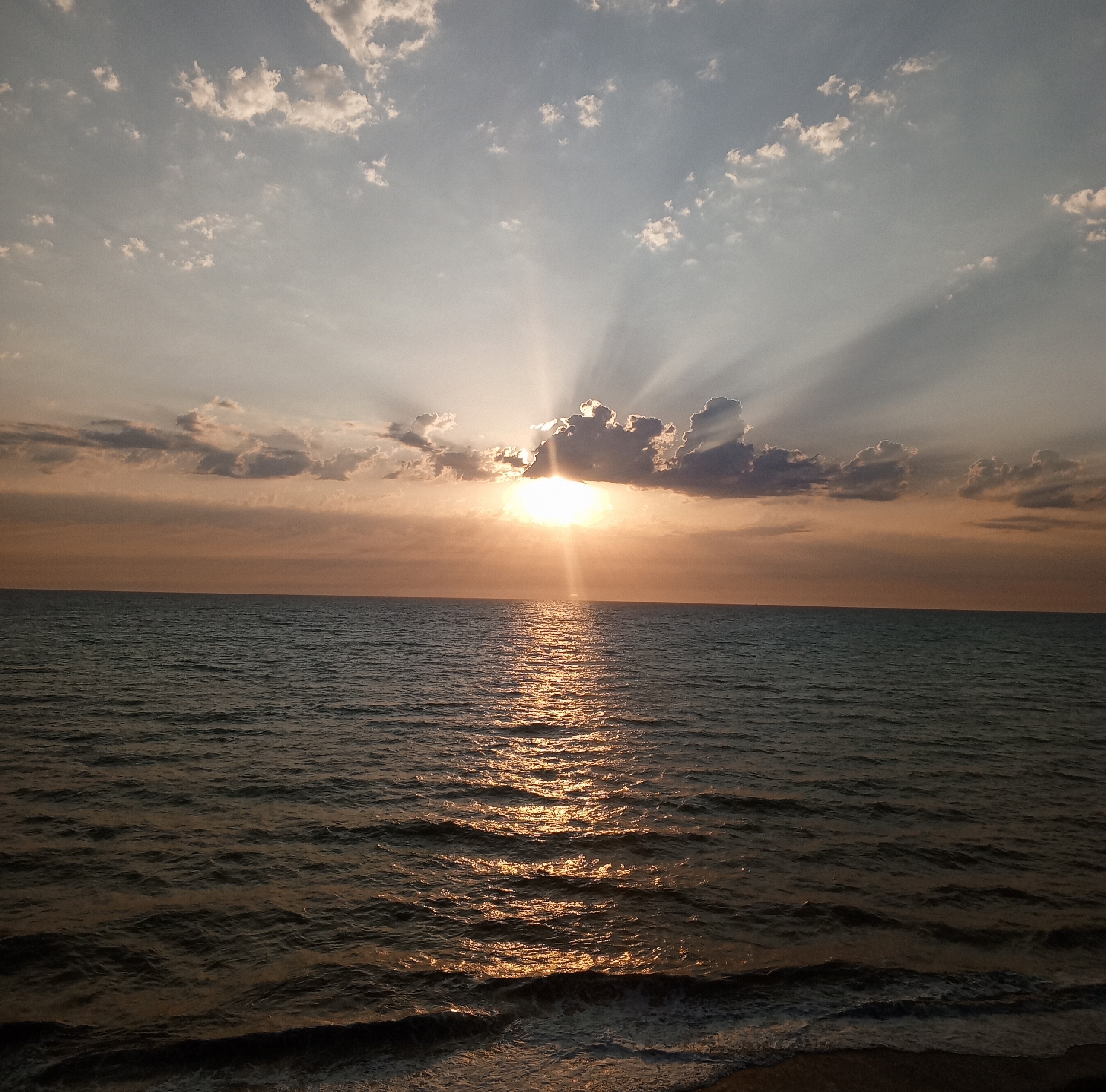Сияние заката над волнами