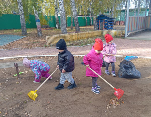 На субботнике и наши малыши