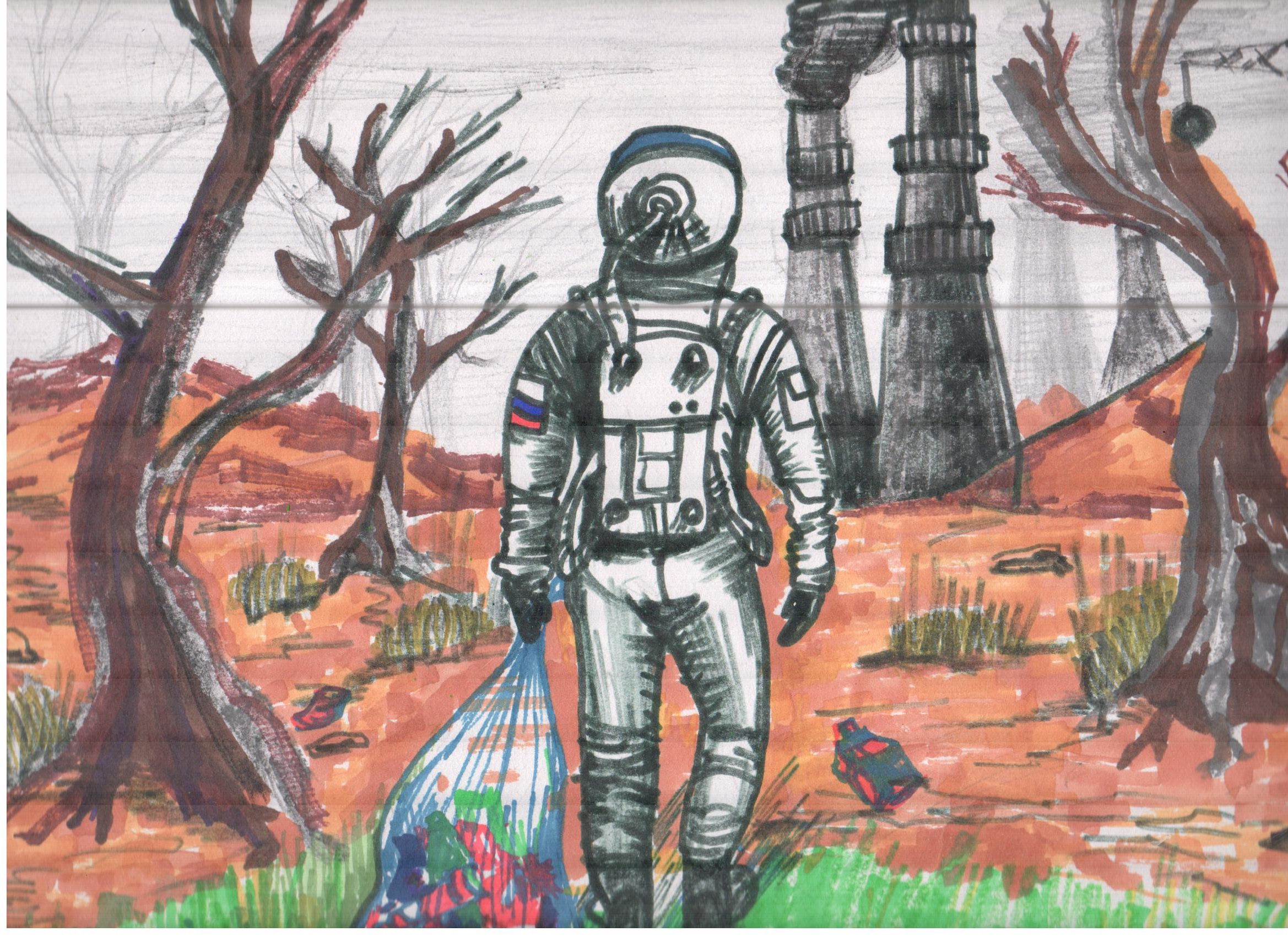 Ежик собирает мусор