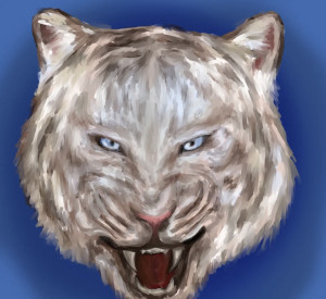 Белый бенгальский тигр с большими клыками